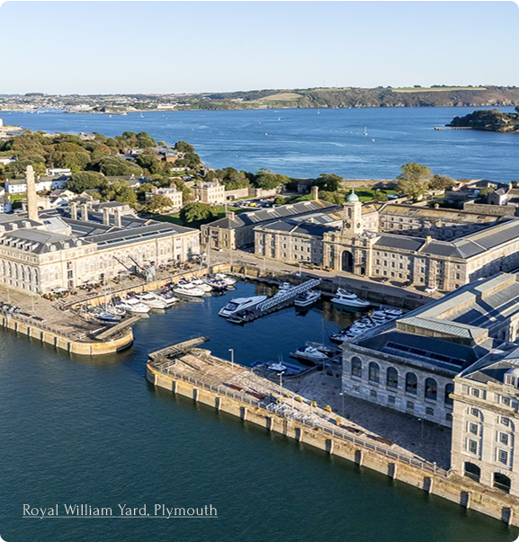 Admiral’s House, Royal William Yard, Plymouth: Set within a Grade II listed waterfront development, our Plymouth hotel blends maritime history with modern calm. Surrounded by independent eateries, it’s a place for slow mornings, coastal strolls, and discovering the hidden gems of the yard.